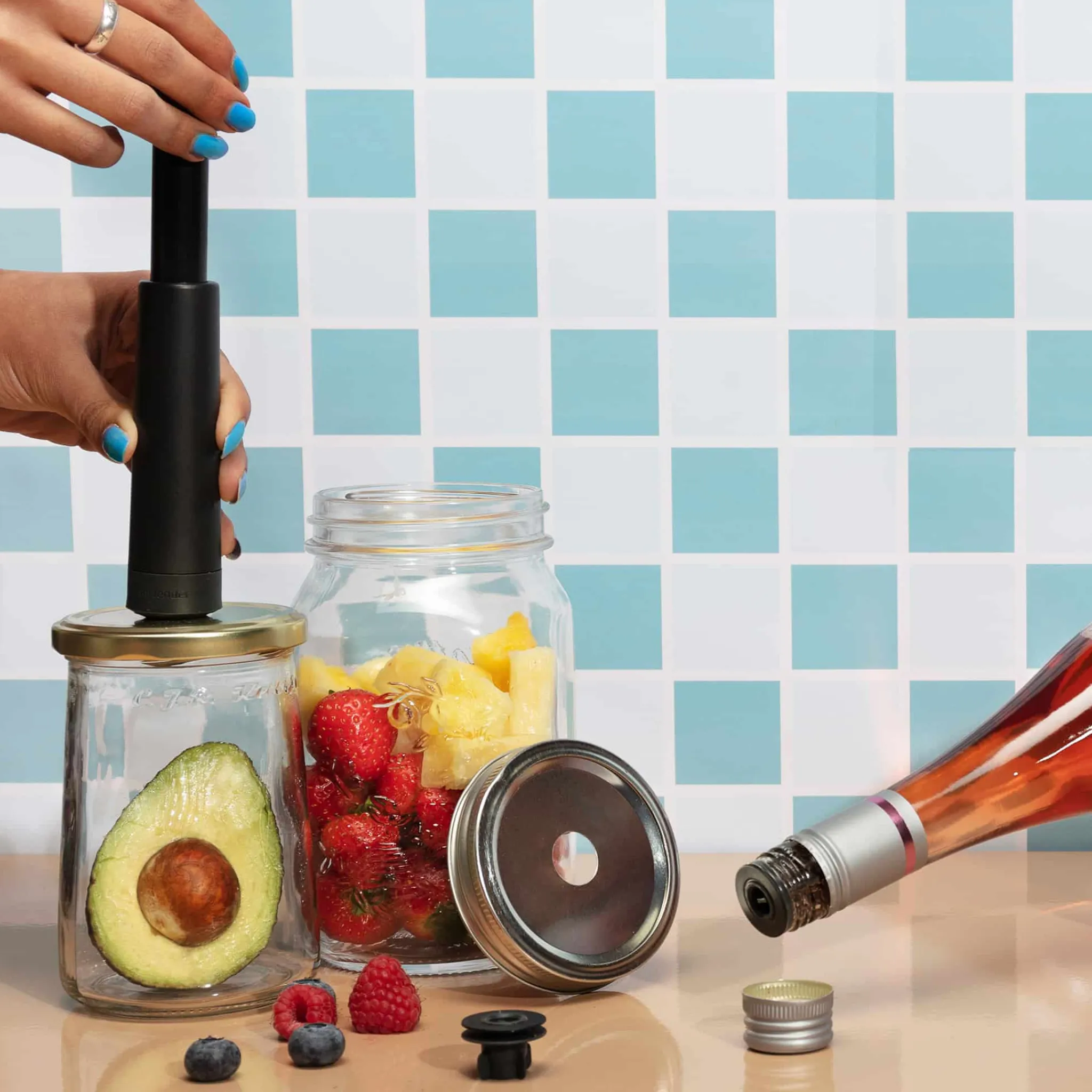Airtender’s vacuum sealing set keeps food and wine fresher for longer. You can turn any jar or wine bottle into vacuum sealed storage.