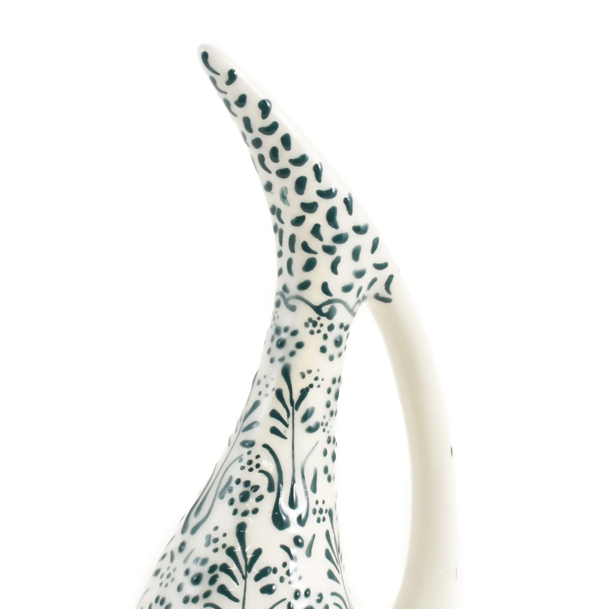The tall jug is decorated with an intricate green design on a white background. Place it in the centre of your table so guests can help themselves.