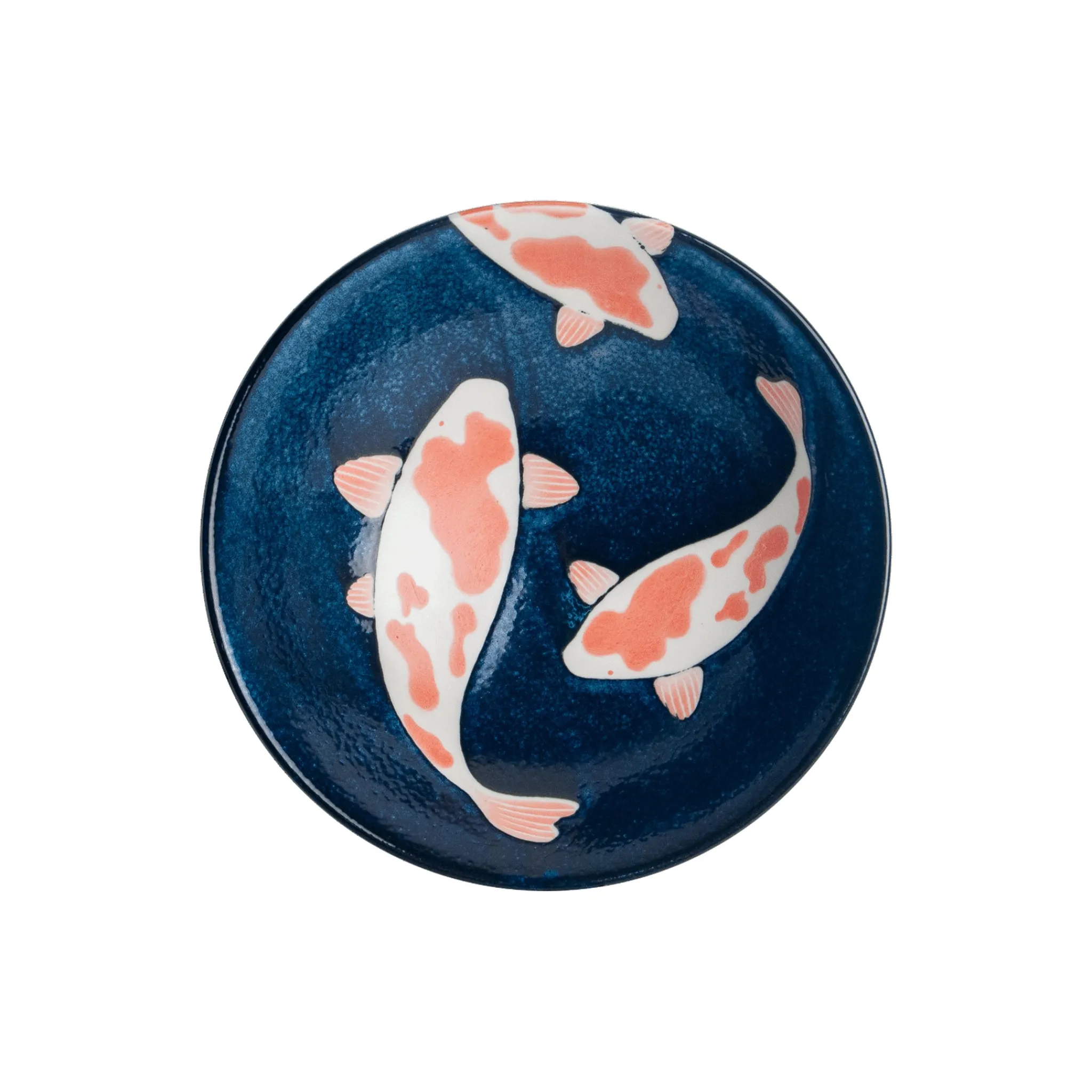 The deep blue glazed bowl features a beautiful fish design inspired by Japan’s beloved koi.