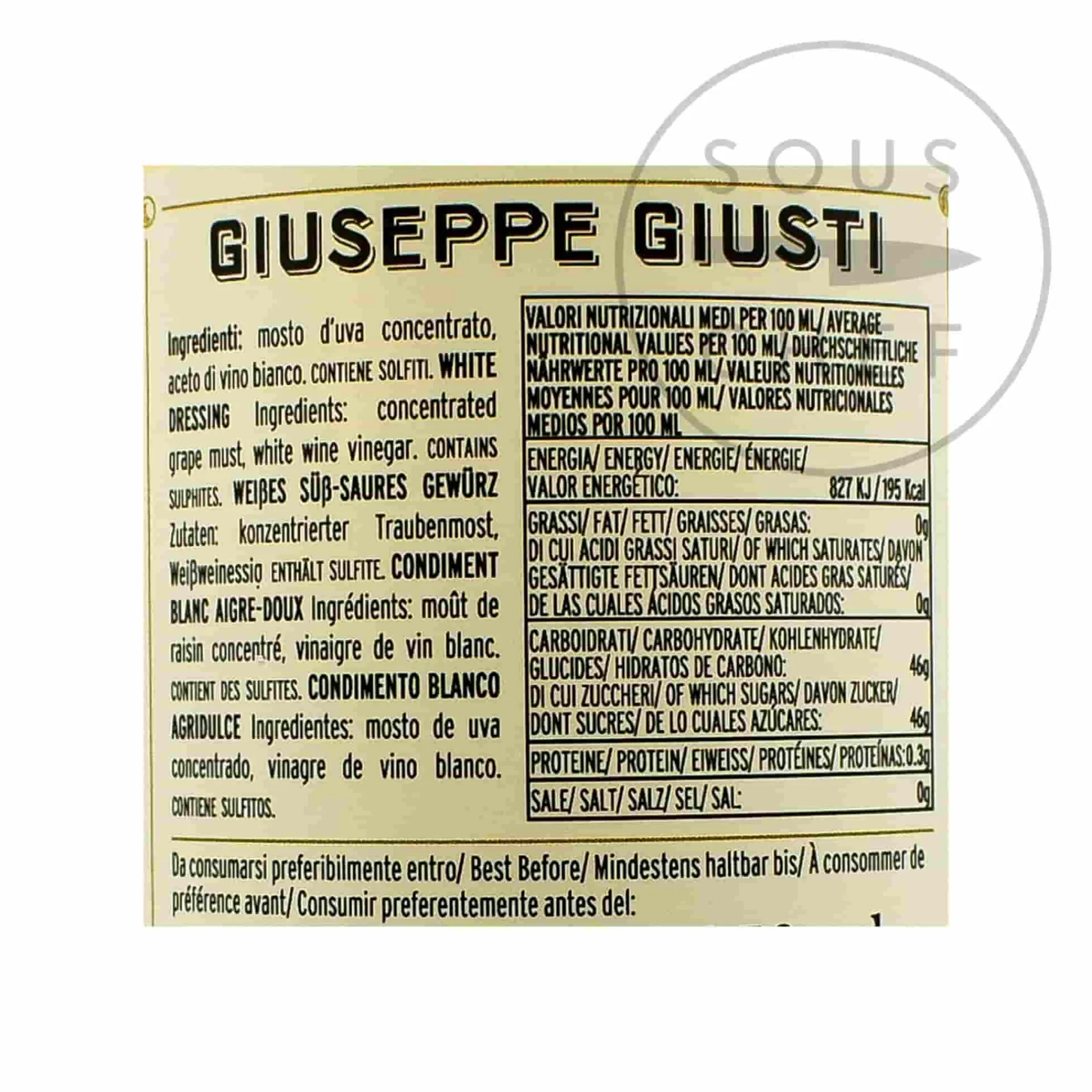Product formulations and details may change. For the latest ingredients and allergen information always check product packaging prior to consumption. Ingredients: Concentrated grape must, white wine vinegar. Contains sulphites.