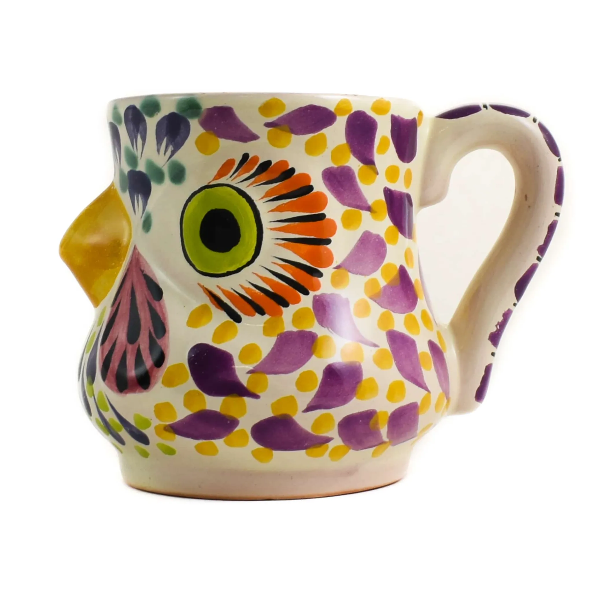 Brighten your day with this eye-catching rooster mug. Made in Mexico, it’s decorated in lively shades of orange, green and purple.