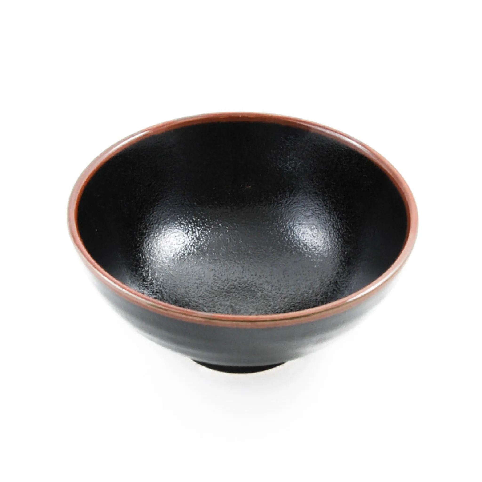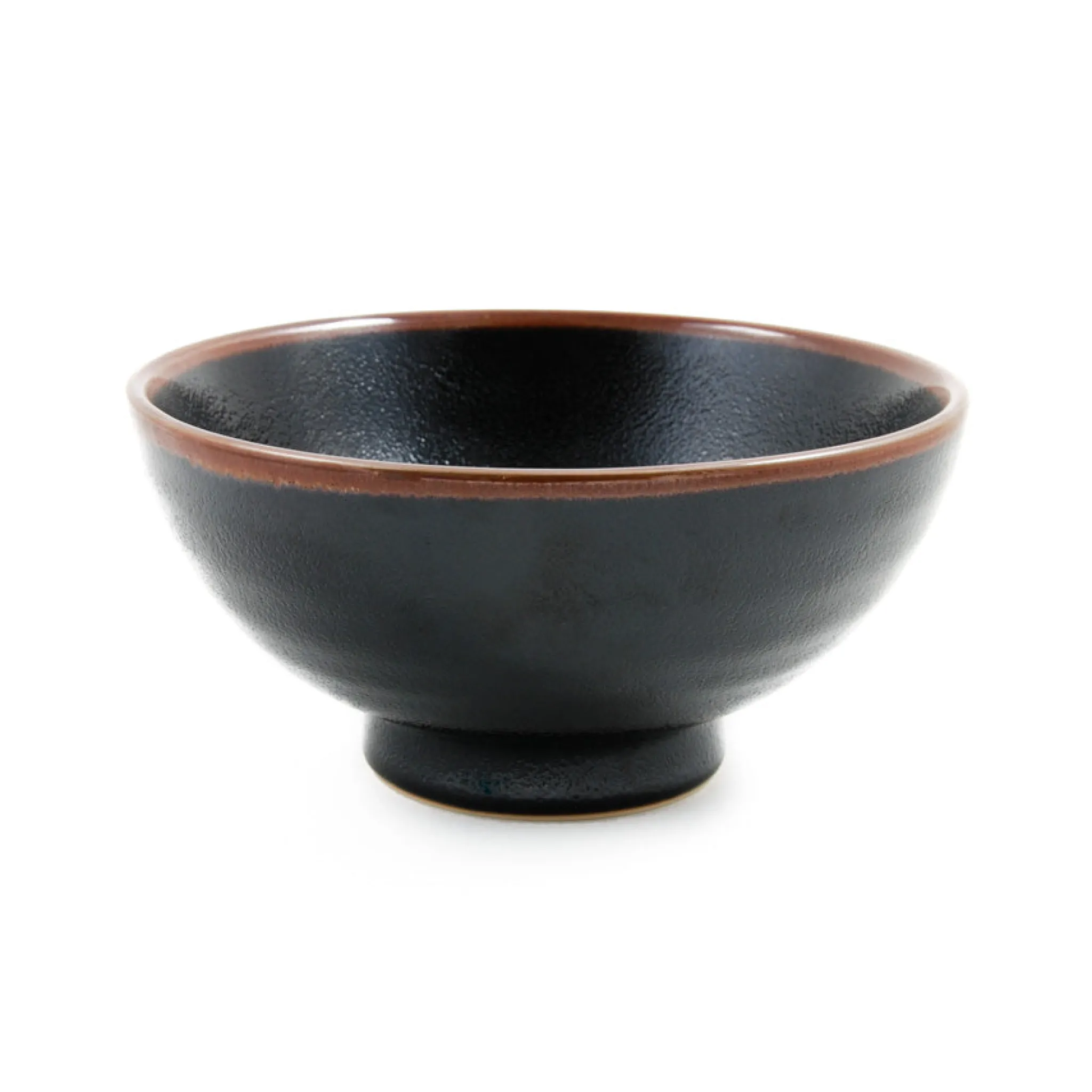 This black stoneware ramen bowl with a dimpled texture and brown rim makes for an attractive piece of tableware. The black glaze creates a dramatic background, working particularly well against both light food, such as rice dishes or chowders, and brightly-coloured soups or fresh salads.