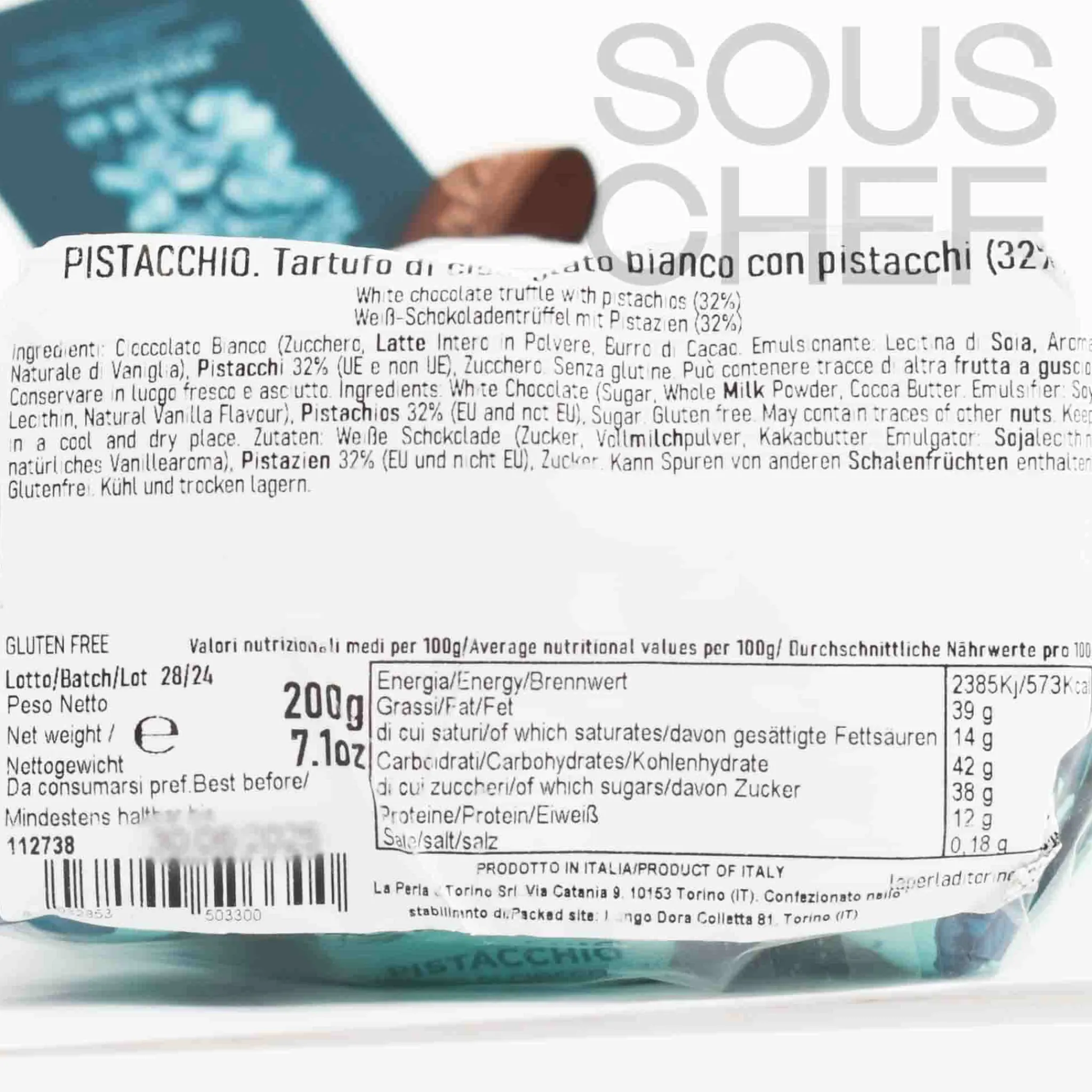 Created by La Perla di Torino, these truffles are an indulgent treat for any time of day. Savour one after dinner or with your morning cappuccino. They are a perfect harmony between white chocolate and lightly salted pistachios.