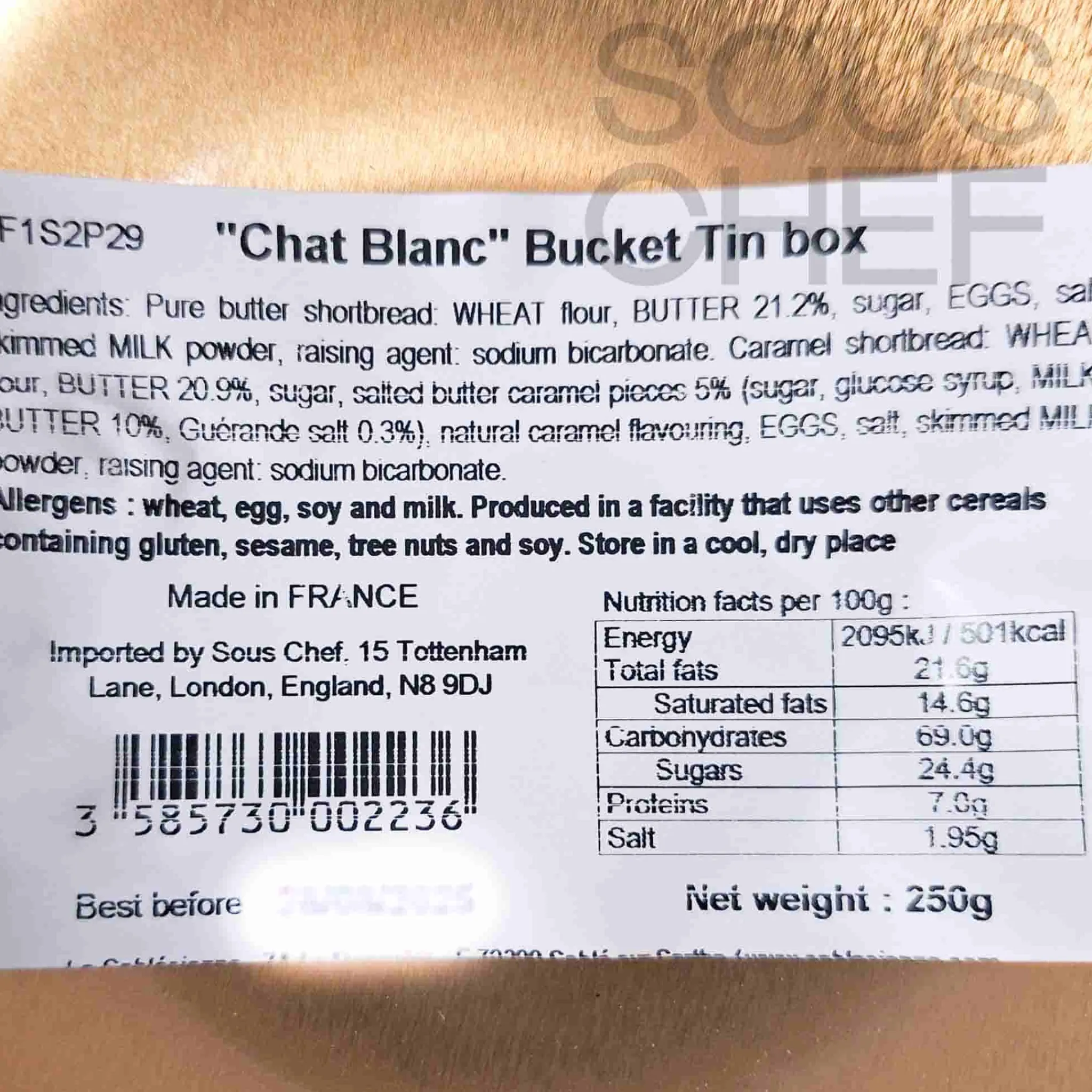 The black tin has gold Art Deco details and a charming cat illustration. It helps to keep your shortbread fresh and can be reused once they are finished.