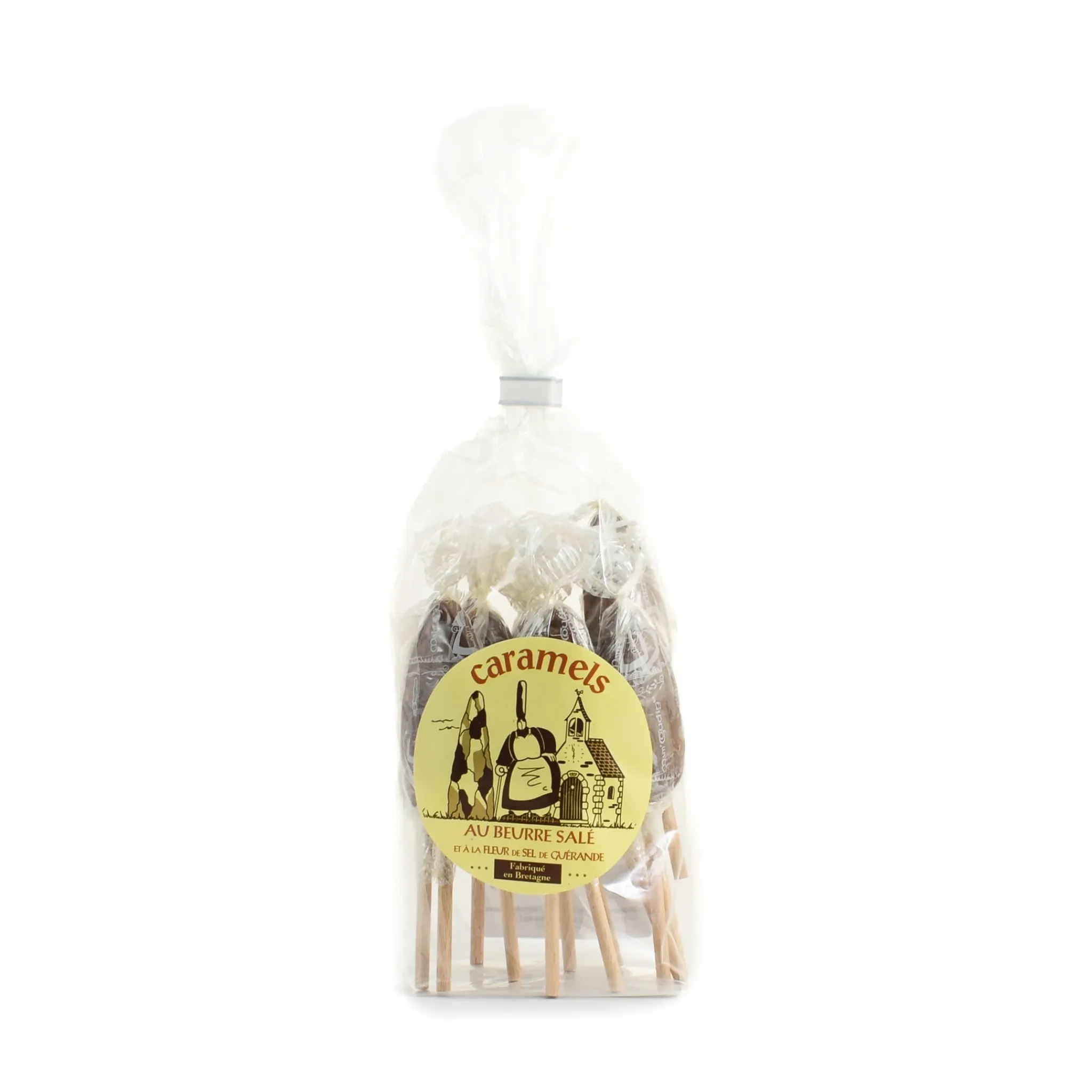French salted butter caramel lollipops are a sweet, buttery delight. Produced in Brittany, their flavour is the perfect sweet-salt balance.
