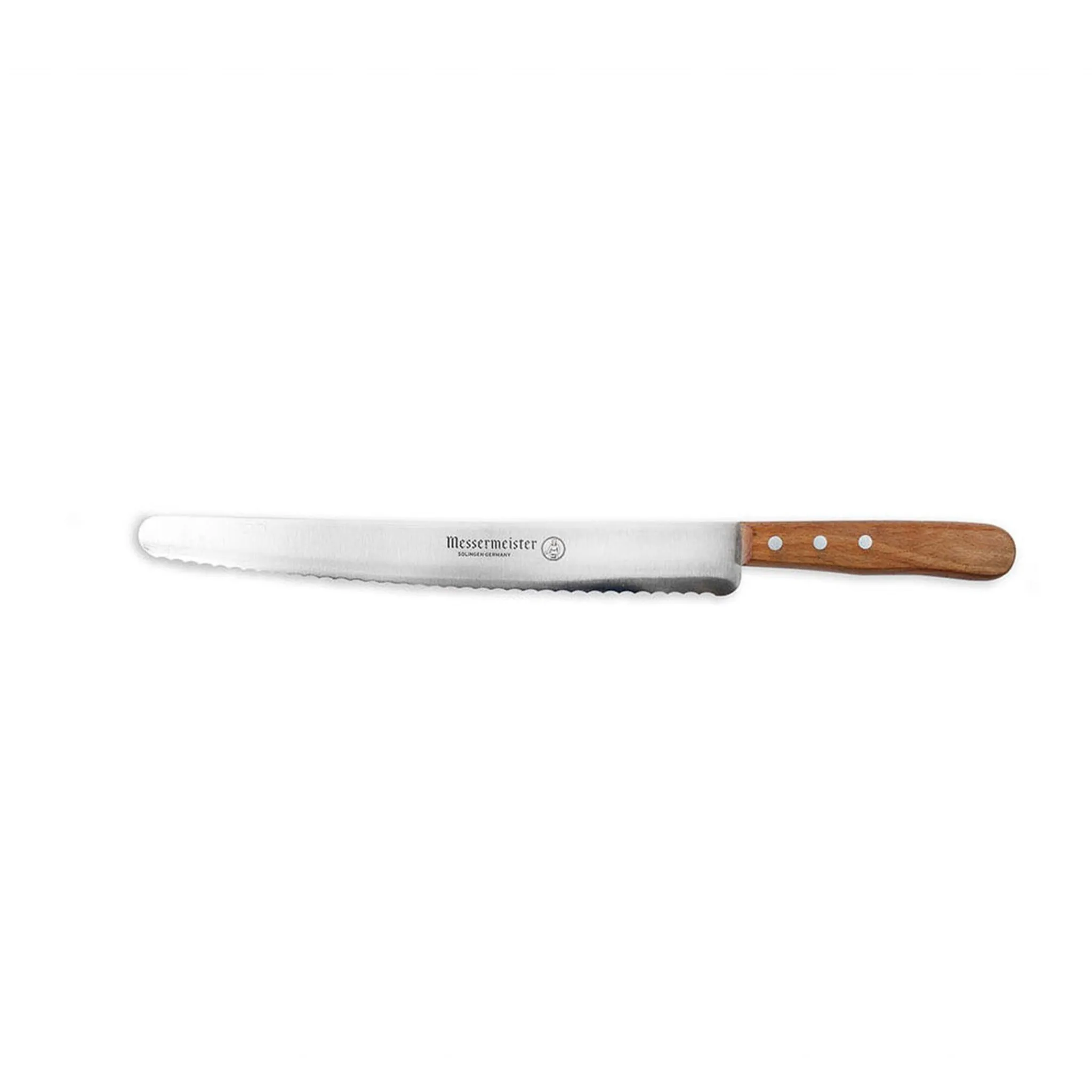 The Messermeister Future bread knife has a long serrated blade. It can slice large loaves and crusty sourdough with ease. The length of the blade makes it easy to slice cakes and tarts. Plus, it’s sturdy enough to handle tough vegetables like squash and swede.