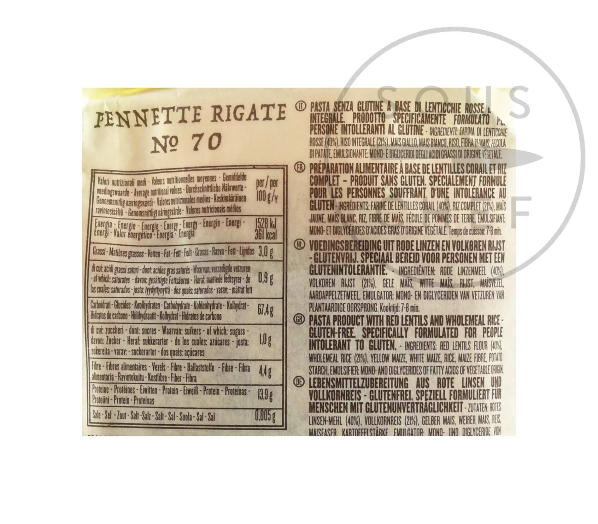 Rummo gluten free lentil pennette rigate is a classic tube pasta shape with earthy flavours from red lentil flour and brown rice. This high protein and high fibre pasta is extruded through bronze dies. The rough surface allows sauce to cling to the pasta, while the hollow tubes are excellent for holding richer ragus and chunky vegetable sauces. The pennette rigate cooks in 7 minutes.