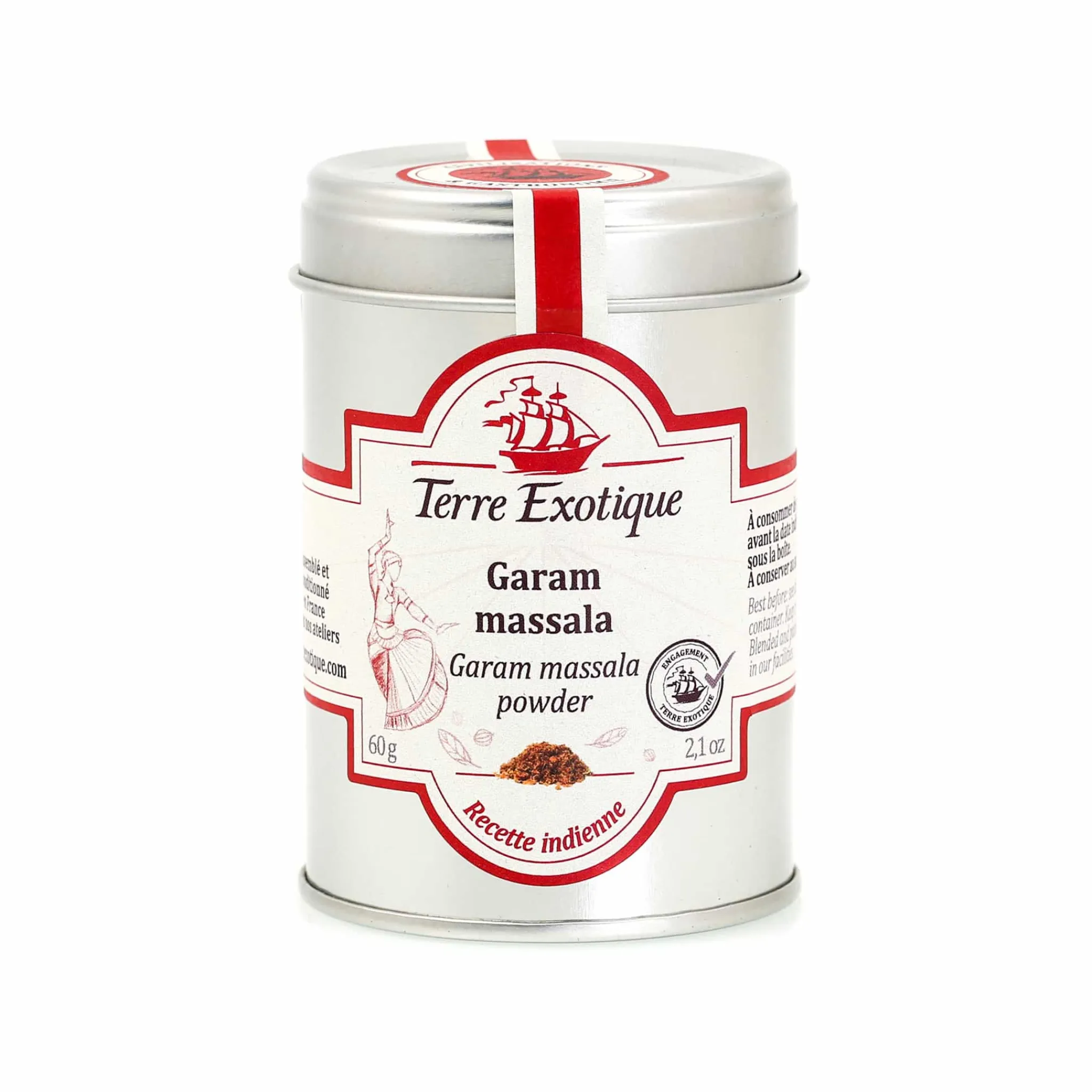 Terre Exotique’s garam masala is a Northern Indian spice blend, used alongside onions as the base for curries. In Hindi, garam translates as spicy, and masala translates as spice mix. This key spice mixture is made with fenugreek, cinnamon, fennel, black pepper, green cardamom and coriander – it has a warmth, slight smokiness and peppery kick.