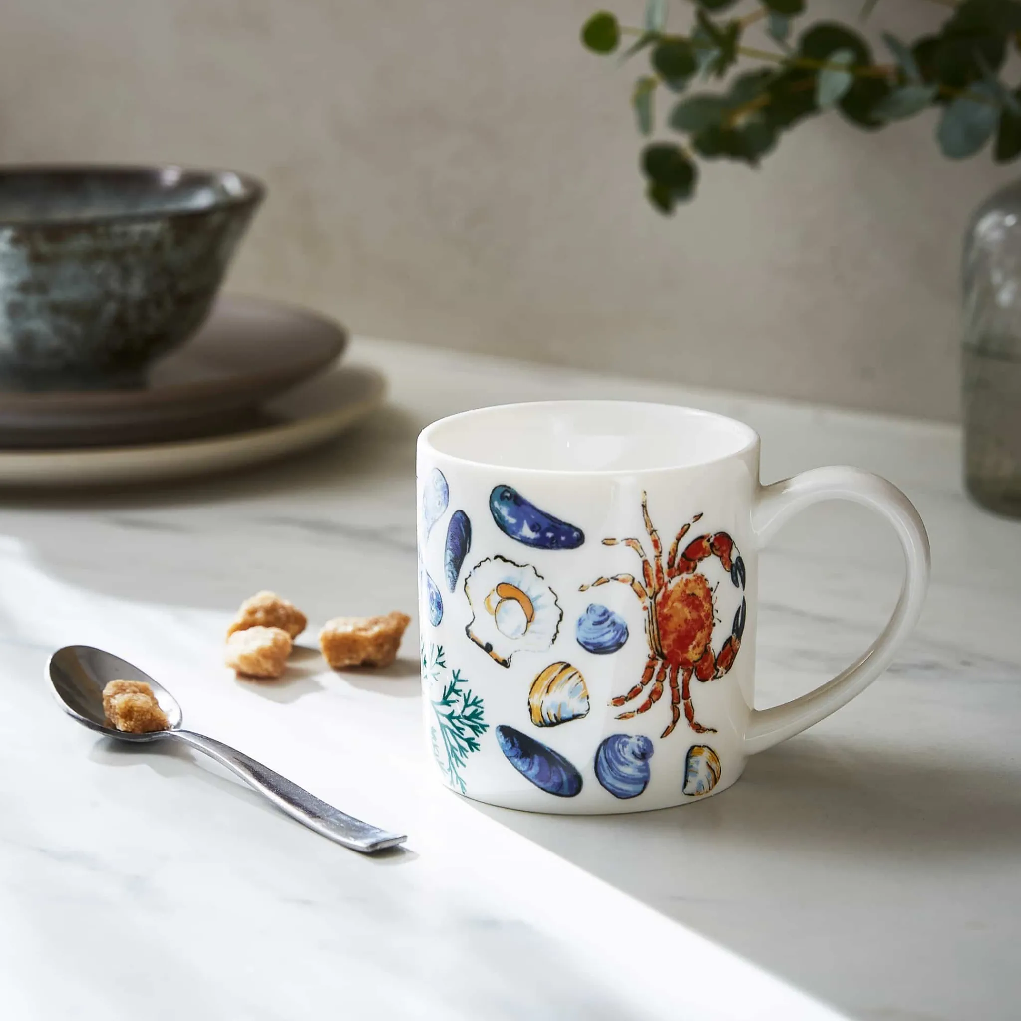 This hand-painted shellfish mug brings seaside chic to your table. Made from bone china, it’s decorated with colourful sea creatures. Crabs and mussels sit beside clams and scallops, while frilly seaweed adds to the nautical theme.