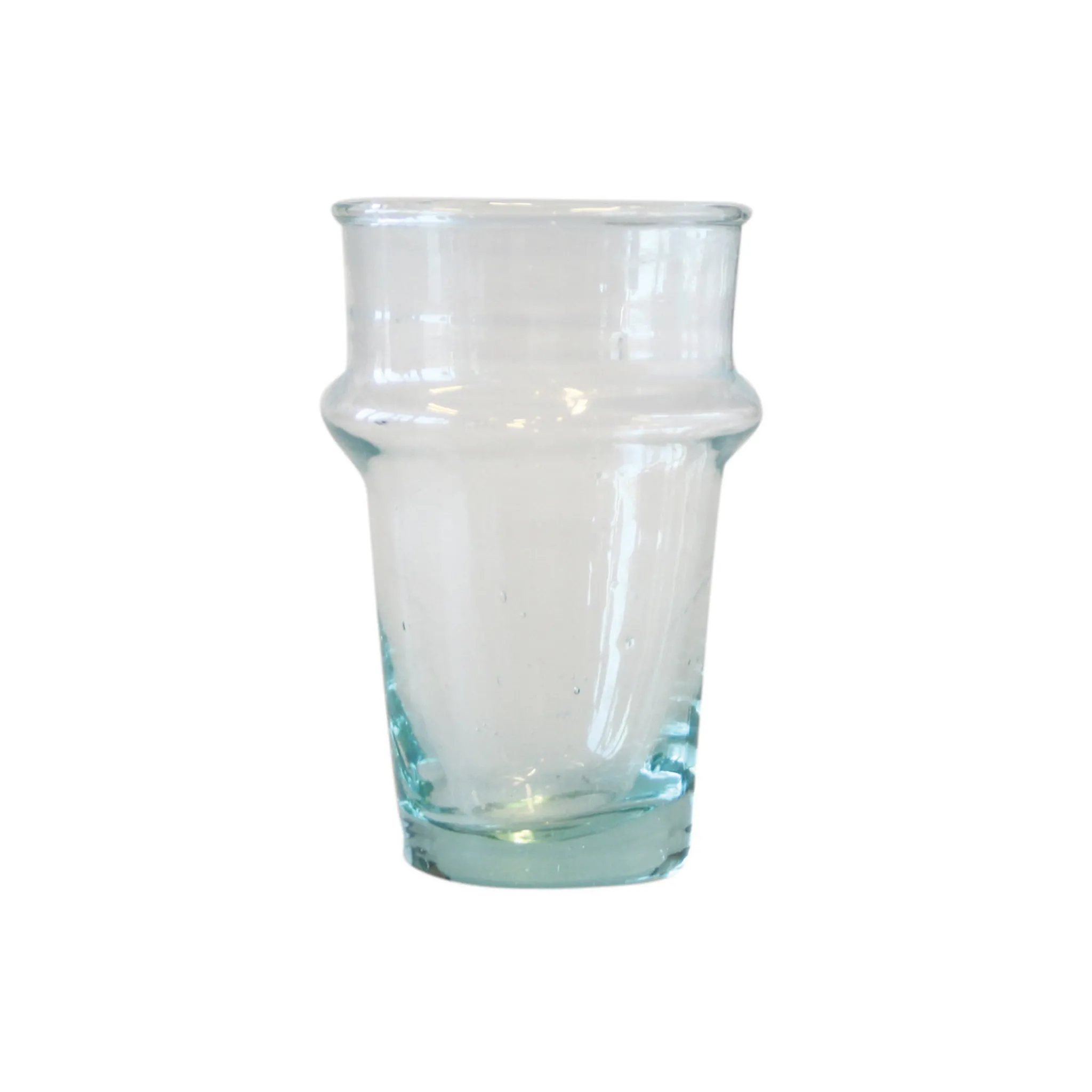 The Moroccan water glass brings a touch of the Moroccan souk into your home. The iconic shape of the glass instantly evokes visions of spice markets and trays of mint tea.