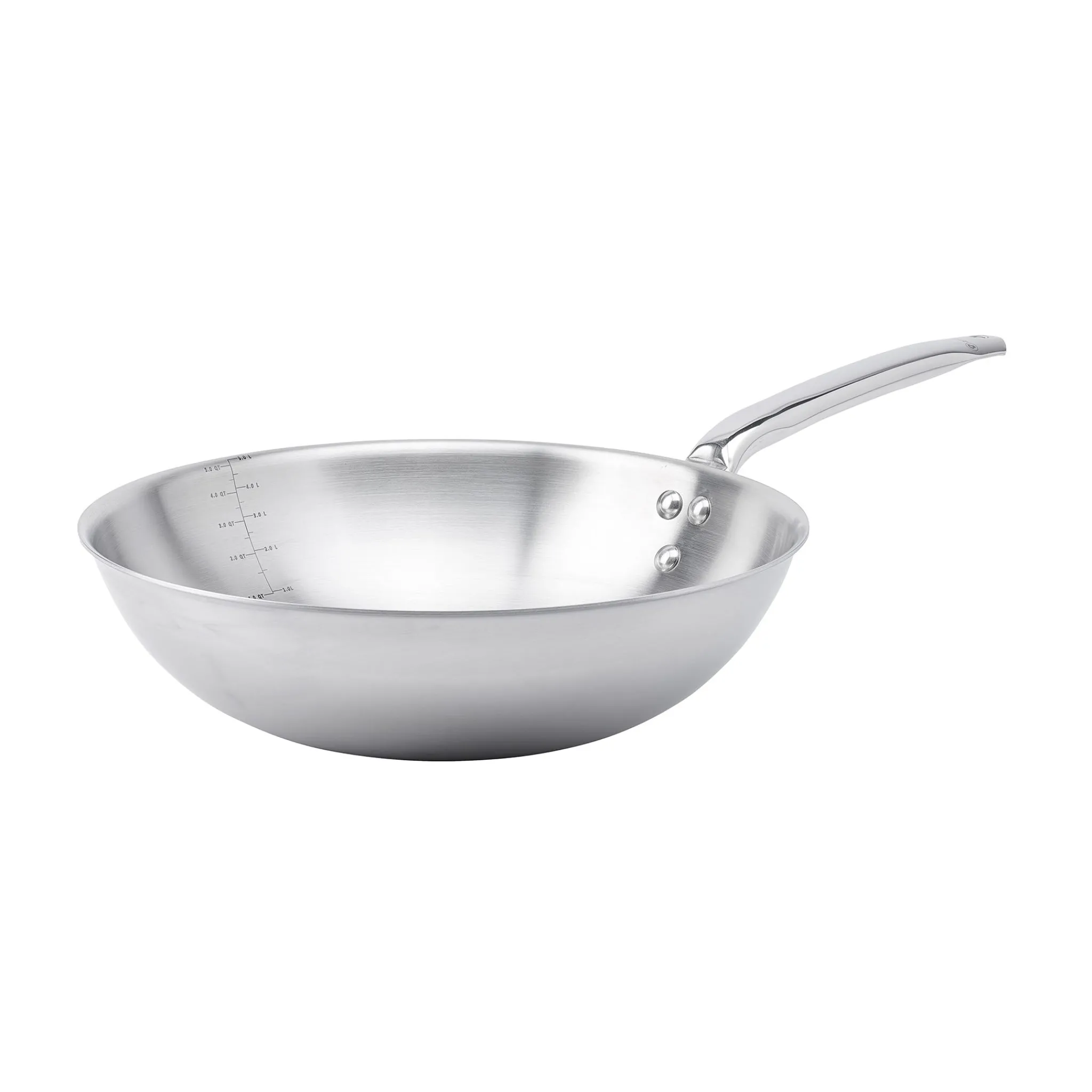 Useful volume marks on the inside of the pan mean you can measure out liquid and cook at the same time. With a brushed finish, this wok is a smart and practical kitchen addition.