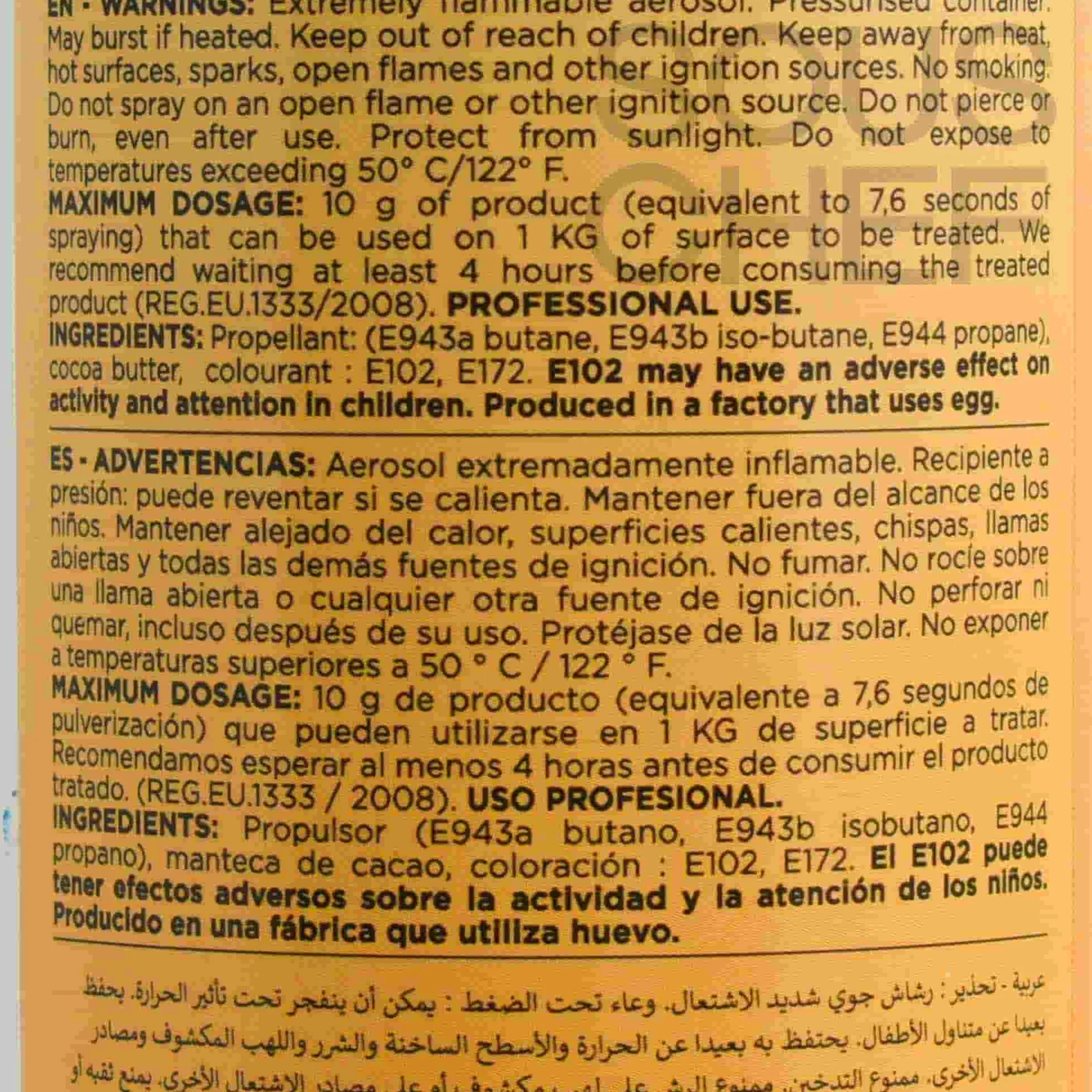 Product formulations and details may change. For the latest ingredients and allergen information always check product packaging prior to consumption. Ingredients: Propellant (e943a n-butane, e943b iso-butane, e944 propane), cocoa butter, colourants : e102*, e172. *e102 may have an adverse effect on activity and attention in children.