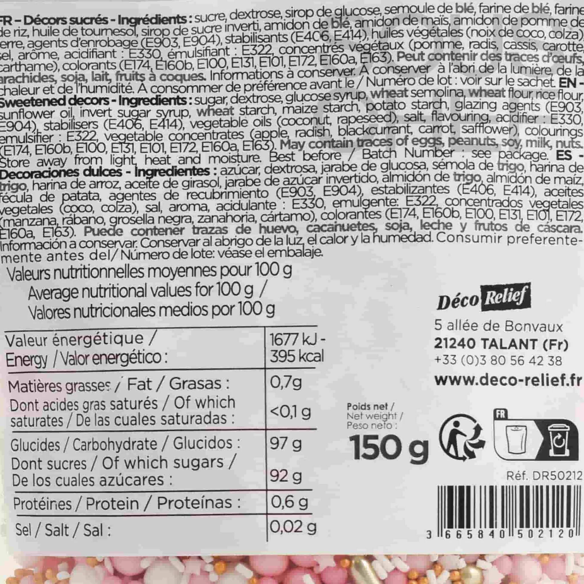 Adorn cakes and cookies with Déco Relief’s pink and gold decorating mix. Sweet and crunchy, it adds a touch of sparkle to all your creations. Use them to transform simple bakes into show-stopping delights for birthdays and baby showers.