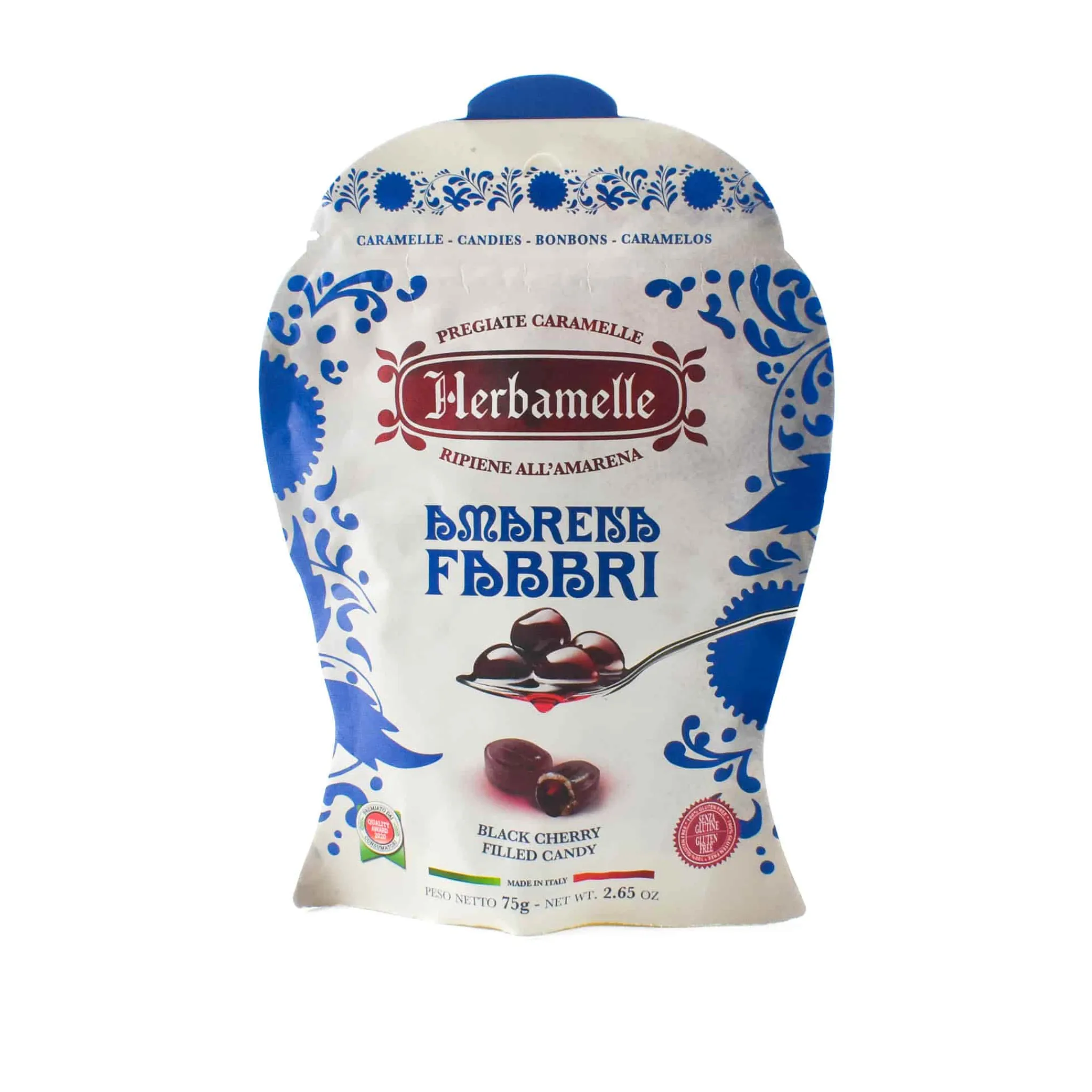 These cherry-flavoured sweets are a collaboration between Fabbri and Italian confectioners Herbamelle. They have a hard shell and a soft centre bursting with the fruity flavour of amarena cherries. Sweet and sour in equal measure, these candies are a deliciously grown-up treat.
