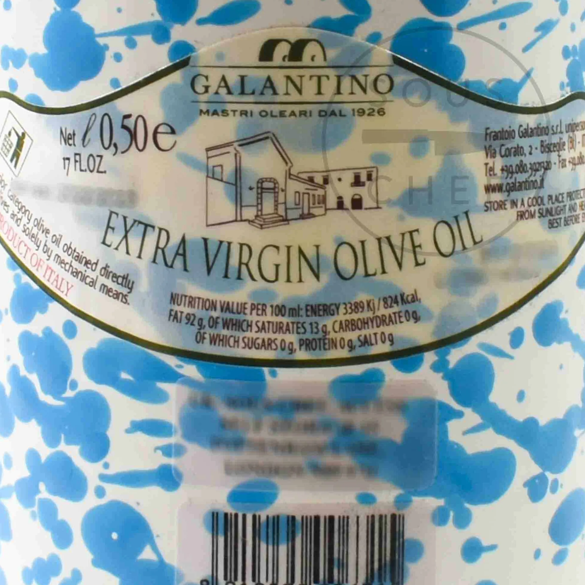Galantino Puglian Extra Virgin Olive Oil in Light Blue Splatter Ceramic Bottle, 500ml New