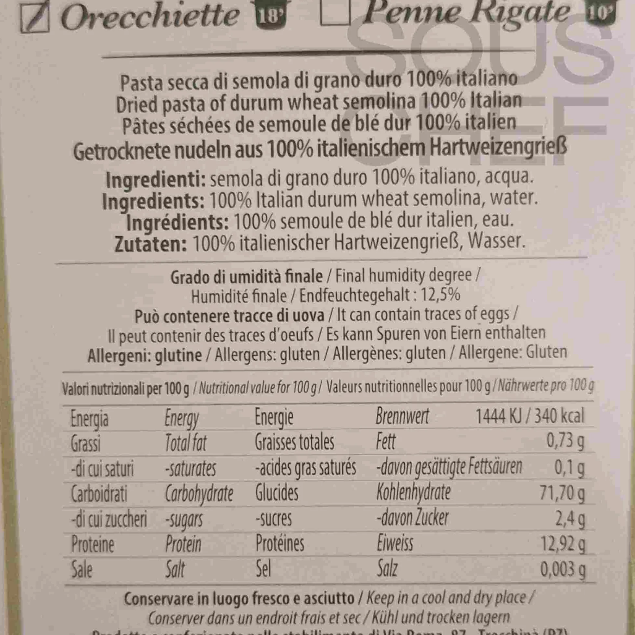 Storage: Orecchiette: Store in a cool, dry place. Cime: Refrigerate after opening and consume within seven days. Chilli oil: Store in a cool and dark place, away from heat and sunlight.