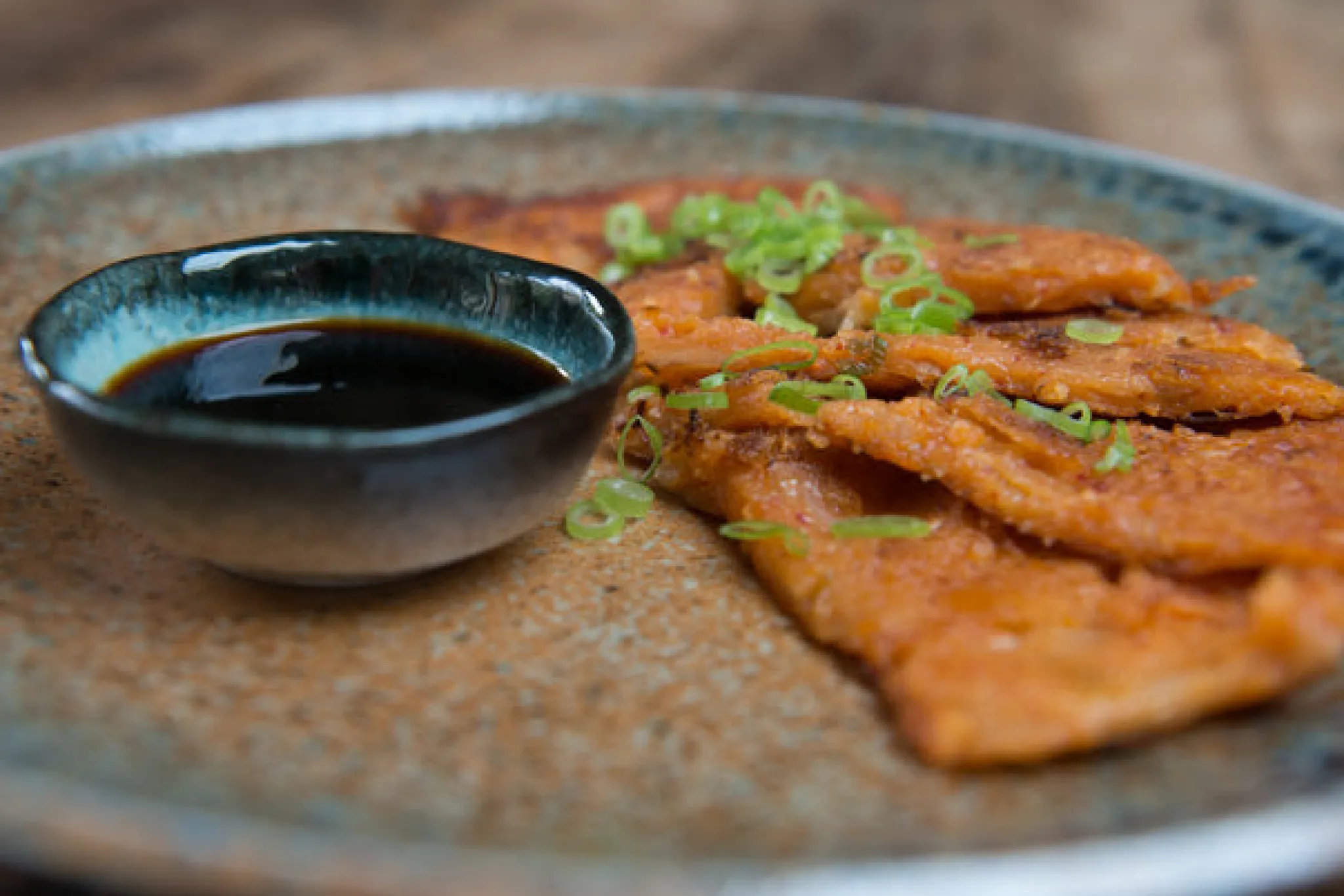 “Chouseki” means tide in Japanese reflecting this plate’s stunning pattern – a sea blue glaze merges with a speckled sandy gold glaze like waves on the shore. This chouseki blue gold plate makes a lovely addition to a Japanese table as an attractive centrepiece or as individual place settings.