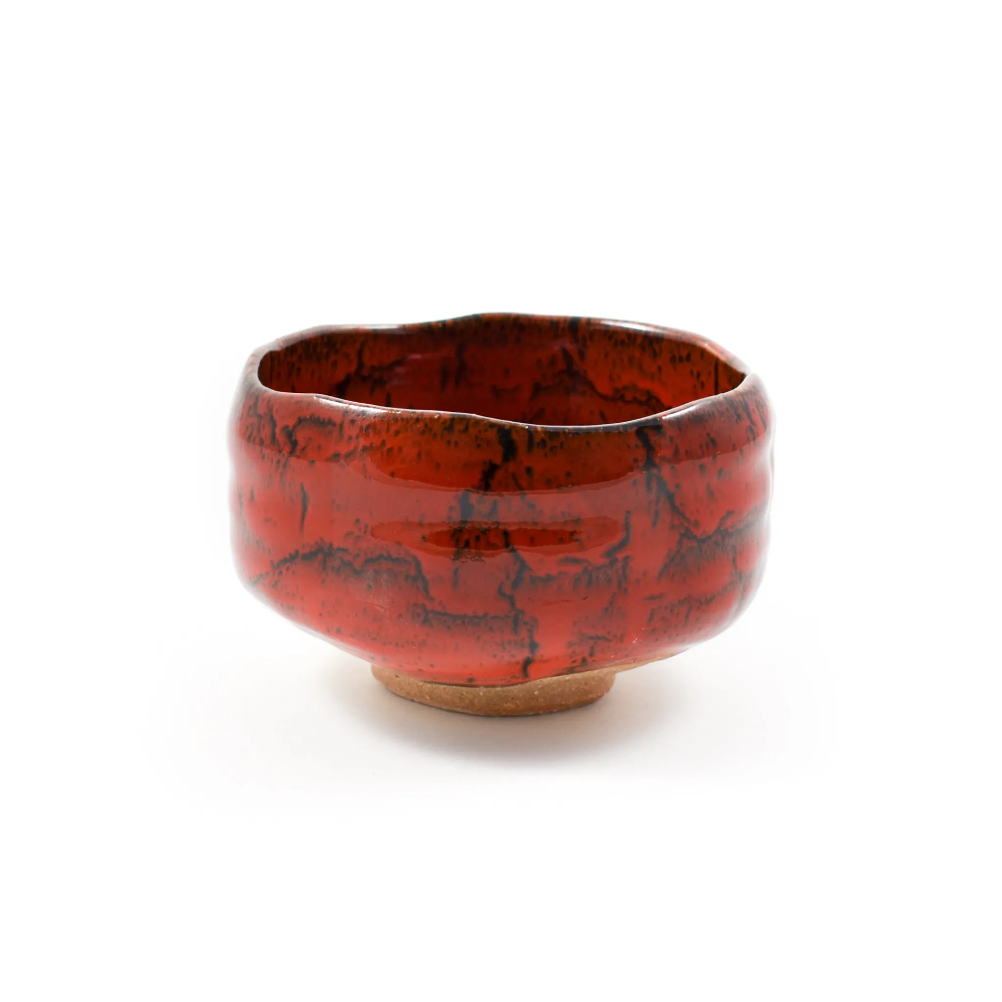In a Japanese tea ceremony, matcha tea is prepared in bowls like this one and served to guests in a graceful, carefully choreographed ritual. The red fire matcha tea bowl is just the right size for conducting a tea ceremony for one or two guests. Conduct your tea ceremony with a matcha tea whisk to perfectly froth your tea.