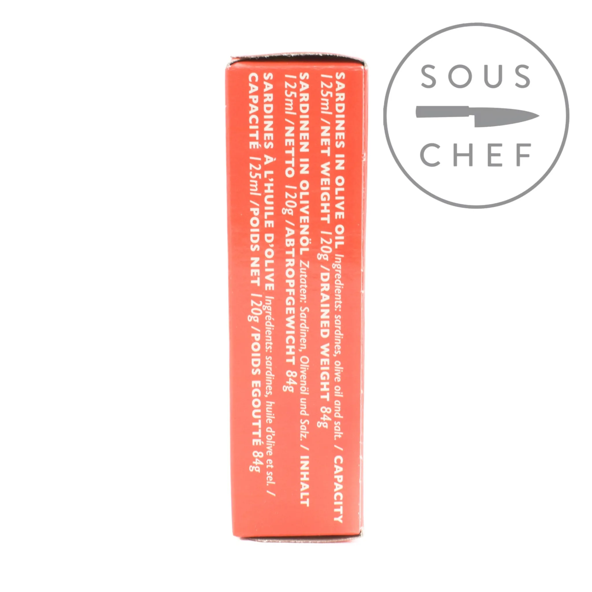 Product formulations and details may change. For the latest ingredients and allergen information always check product packaging prior to consumption. Ingredients: Sardines (fish), olive oil, salt.