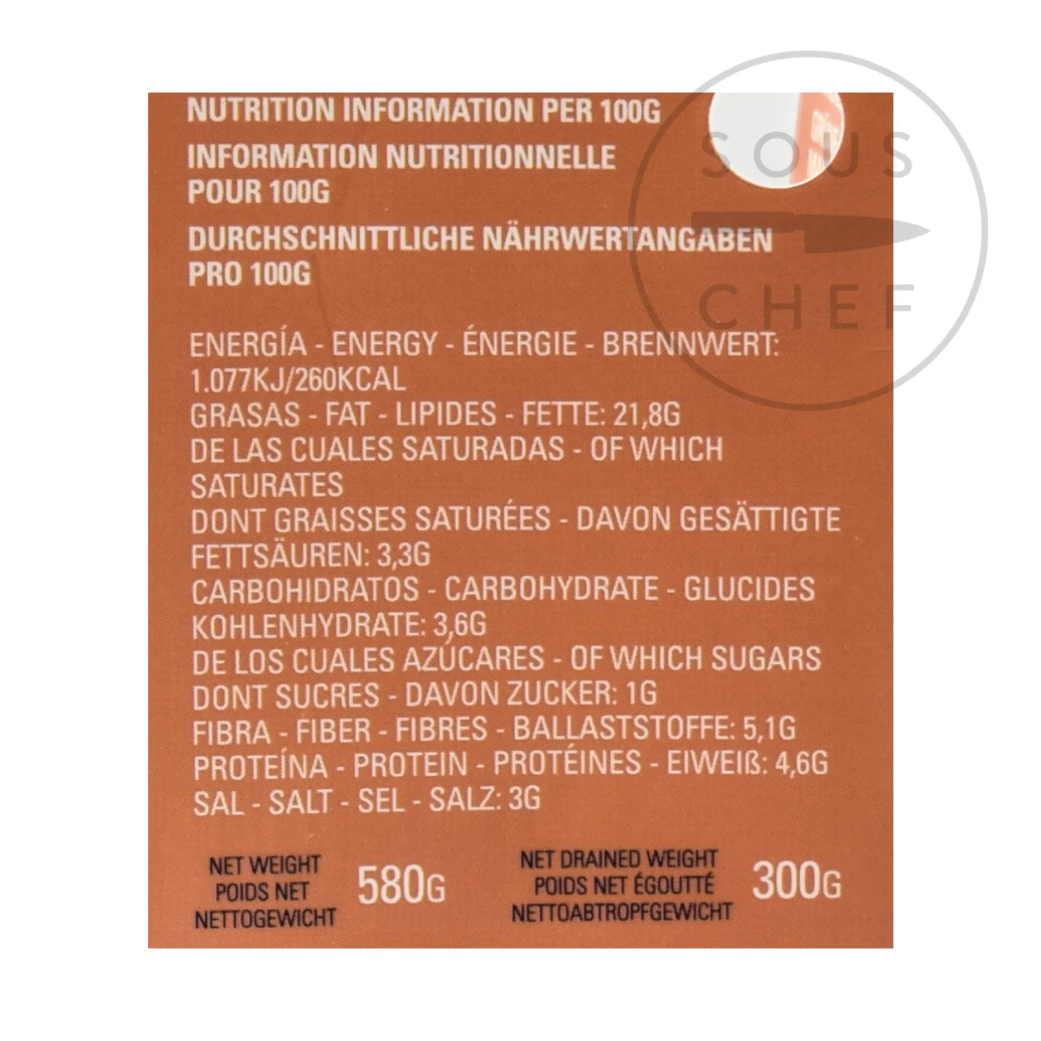Product formulations and details may change. For the latest ingredients and allergen information always check product packaging prior to consumption. Ingredients: Pitted green olive manzanilla (31%), almond (20%), salt, acidulant (E330),preservative (E202), flavour enhancer (E621), antioxidant (E300).