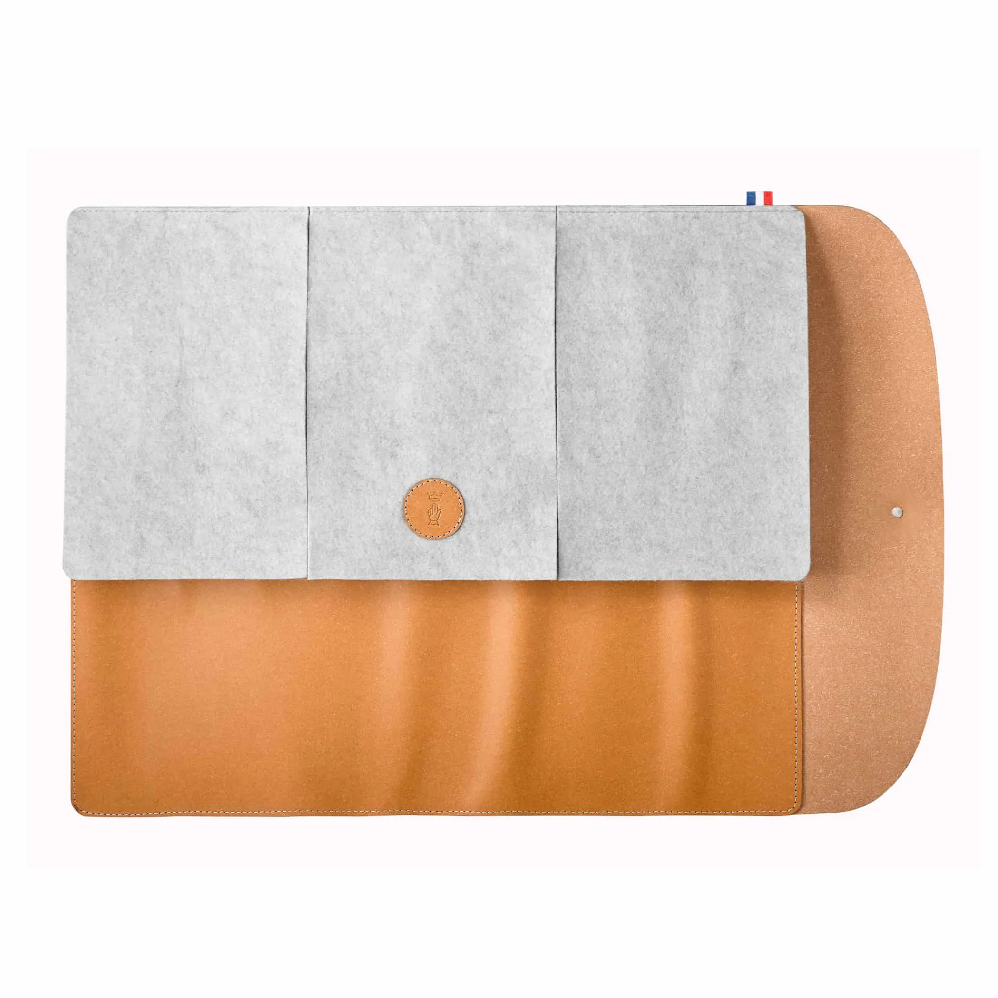 This knife roll is perfect for eco-conscious cooks. It’s made from recycled materials, including waste leather fibres. The roll is lined with felt made from recycled plastic bottles. The soft material prevents your blades from becoming dull or scratched.