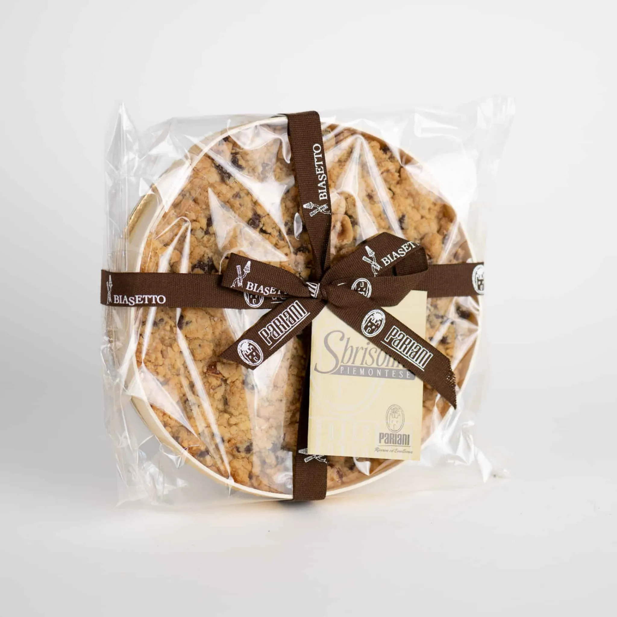 Pariani’s sbrisolina is the Piedmont version of the famous Mantova crunch cake sbrisolona. This version uses hazelnuts instead of almonds, and only the finest ‘Nocciola Piemonte PGI’ hazelnuts for a rich, slightly sweet flavour. This crunchy nut cake combines the hazelnuts with dark chocolate, a pinch of salt and a little lemon peel.
