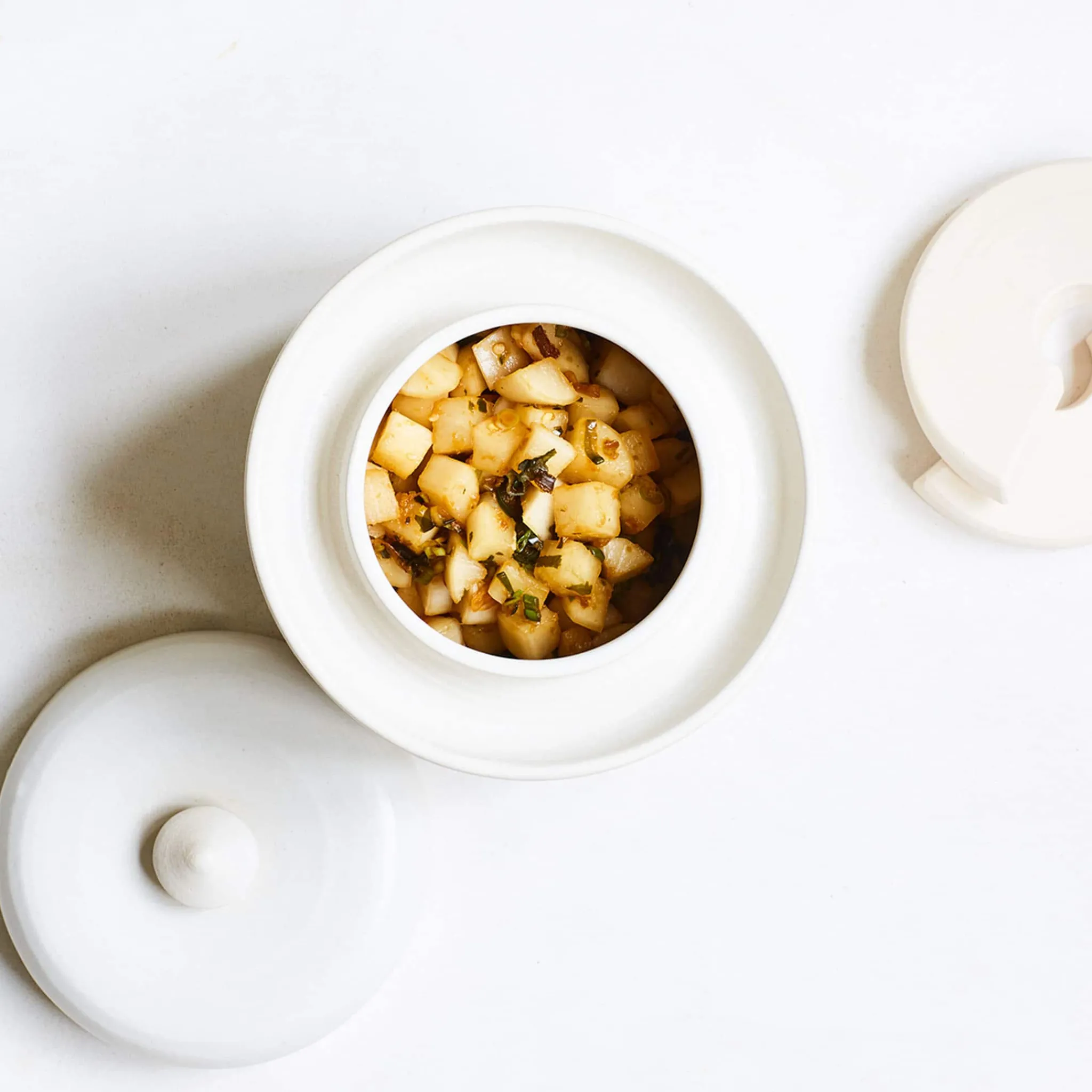 With this handmade stoneware fermenting crock you can make your own sauerkraut, kimchi and pickles at home. With a white glaze, it’s a beautiful piece of kitchen equipment that’s practical, too.
