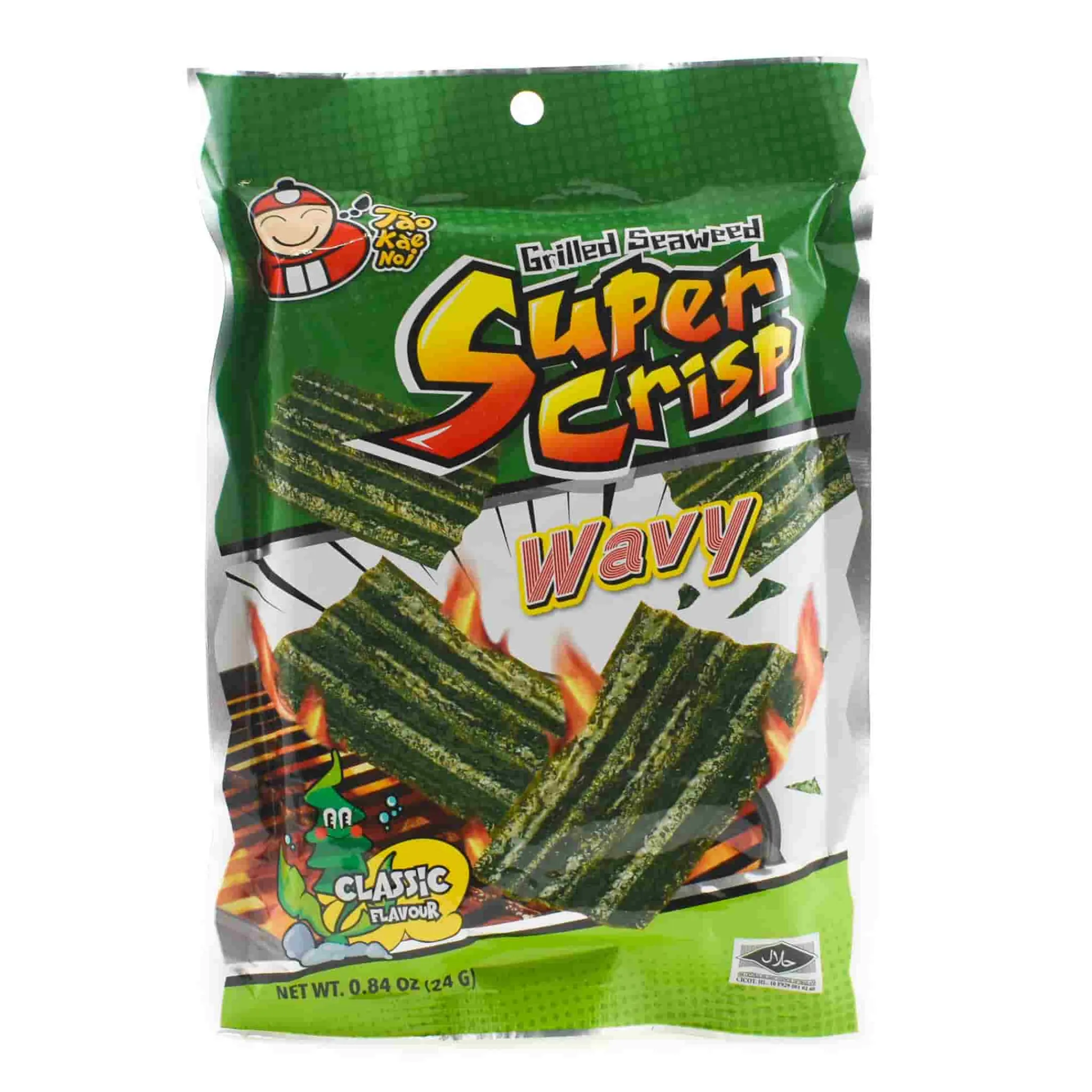 The Thai company Tao Kae Noi (or Taokaenoi) was only set up in 2004 but has quickly become one of the most respected brands of dried seaweed. Tao Kae Noi super crisp flavour is salty sweet, with extra crunch from the sugar.