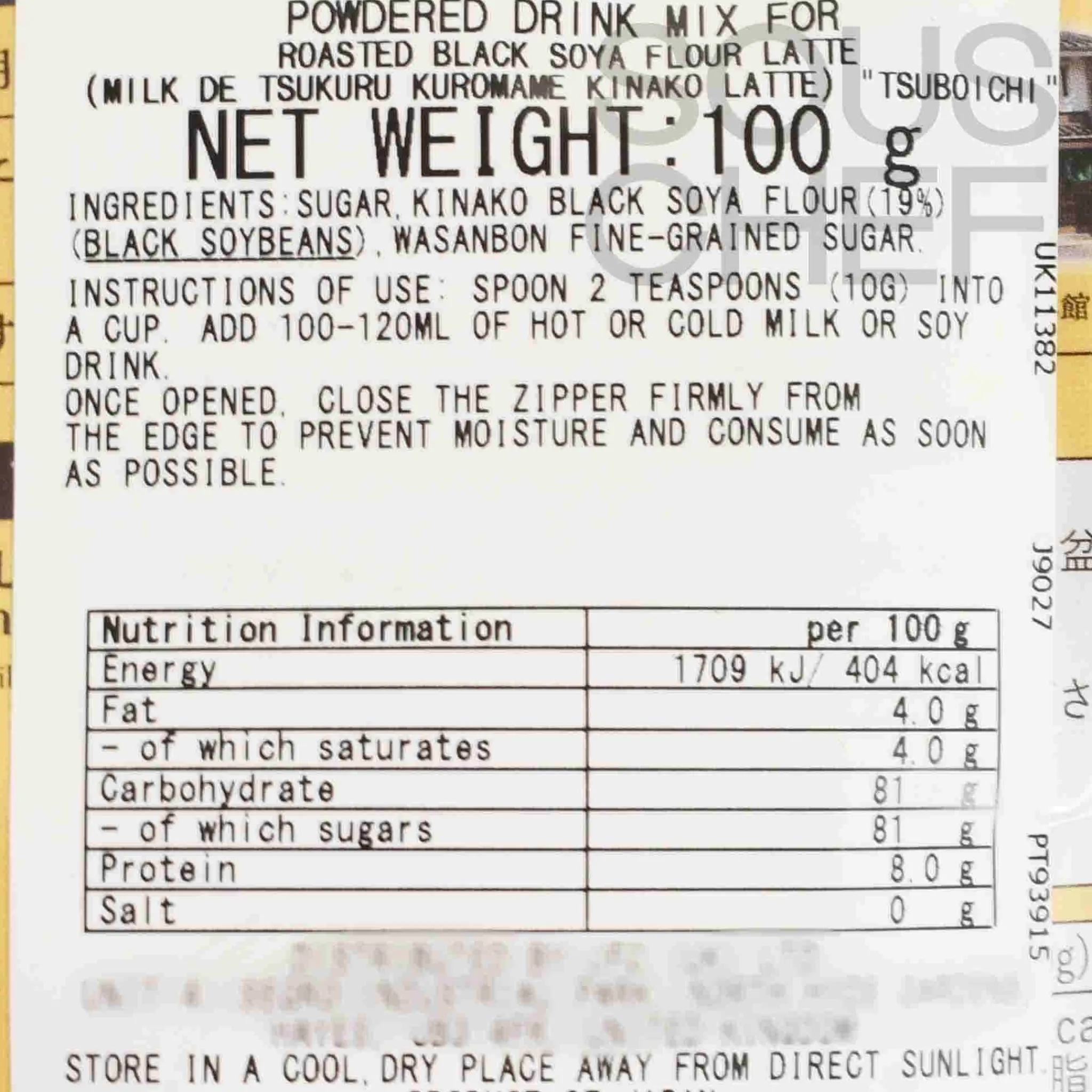 The drink mix is dairy-free and free from additives. It is lightly sweetened to enhance the earthy flavour of black soybeans. While not widely known in the UK, kinako lattes are a popular hot beverage in Japan.