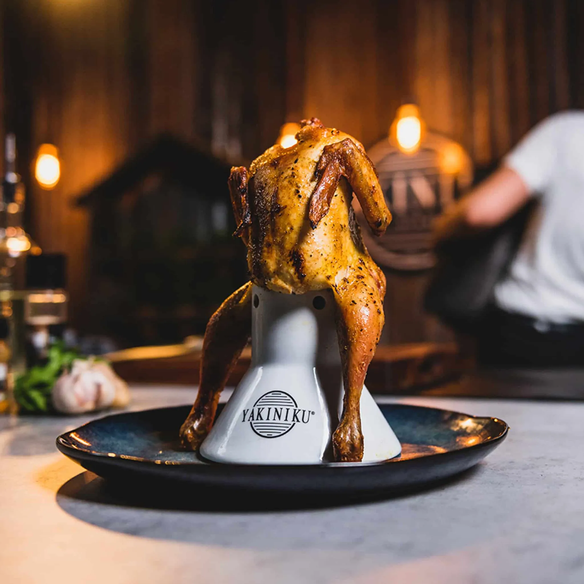 Make the ultimate beer can chicken with this ceramic sitting chicken roaster. You can use it in a lidded barbecue or in your oven or smoker.