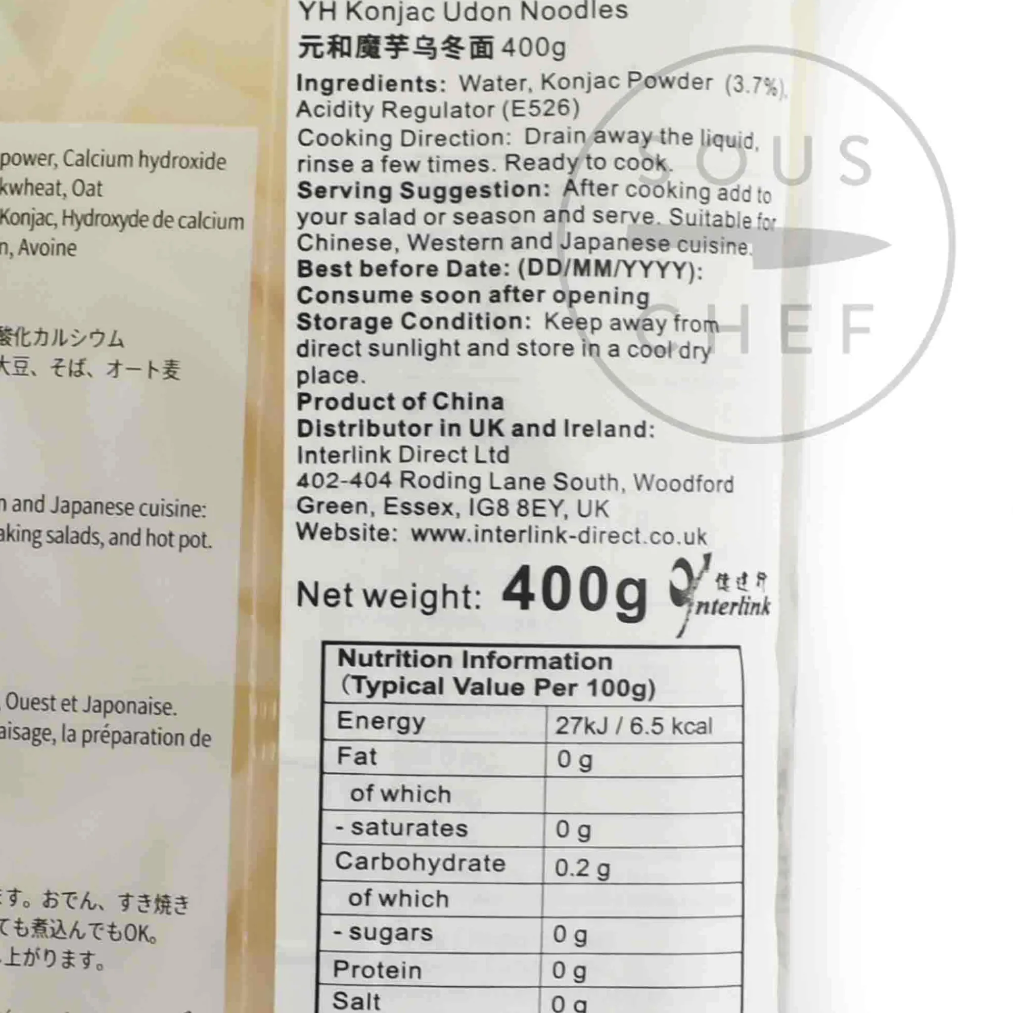 Product formulations and details may change. For the latest ingredients and allergen information always check product packaging prior to consumption. Ingredients: Water, konjac powder (3.7%), acidity regulator (e526).